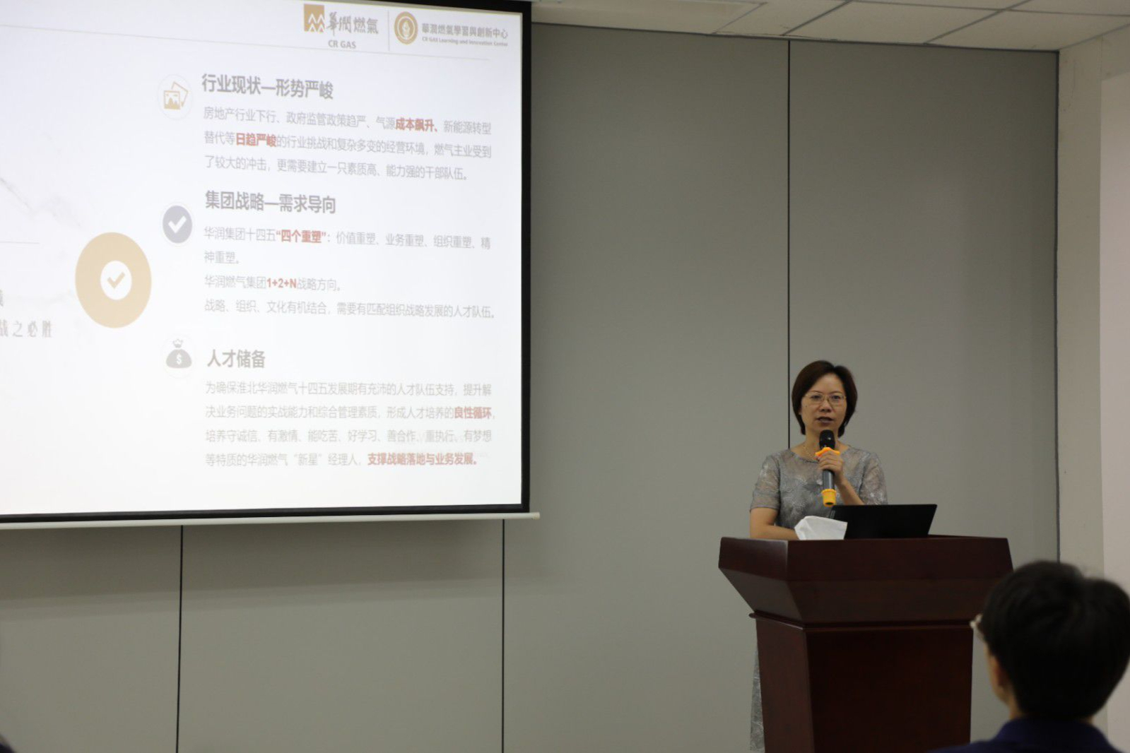 華東大區(qū)人力標桿組組長、淮北區(qū)域副總經(jīng)理雷明桂進行培訓方案宣貫,介紹課程設(shè)計與框架。她指出,“潤冉班”作為青年后備人才培養(yǎng)項目,承上啟下,是人才培養(yǎng)體系中的重要一環(huán),通過課程賦能、行動學習、前后測評等方式,增強基礎(chǔ)管理能力,為公司培養(yǎng)、遴選出優(yōu)質(zhì)儲備人才,為干部選拔提供支持。