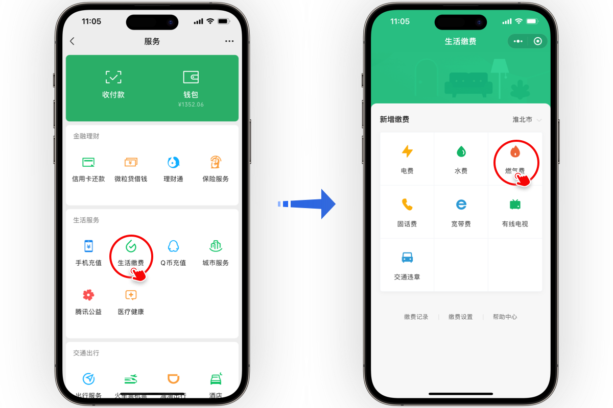 通過微信[生活繳費]-[燃氣費],輸入用戶號進行燃氣繳費及預(yù)存 |