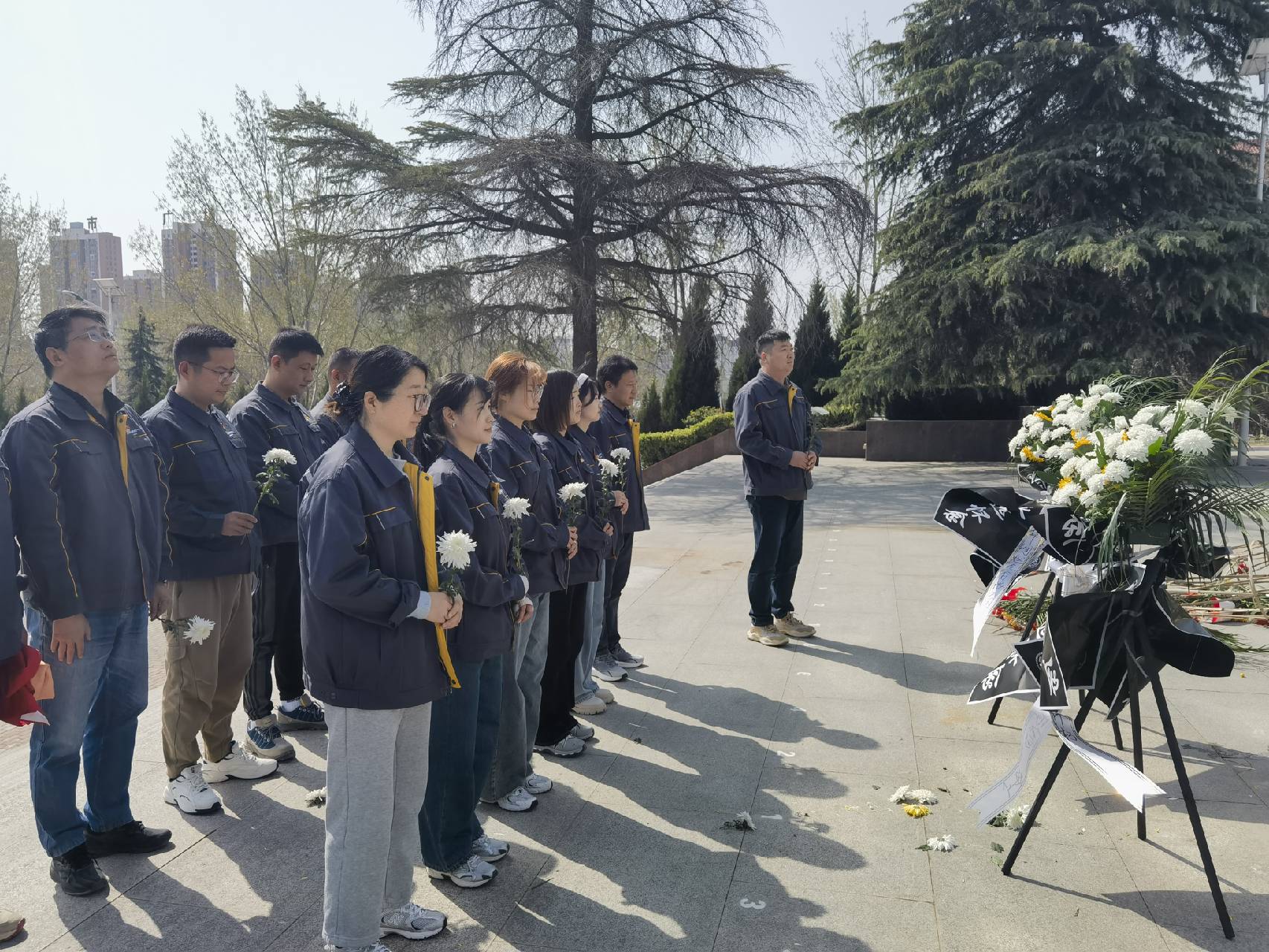 在莊嚴肅穆的烈士紀念碑前,全體黨員懷著崇敬的心情,整齊列隊,向革命烈士敬獻花籃,鞠躬默哀,表達對革命先烈的深切哀思和崇高敬意。隨后,黨支部書記帶領(lǐng)大家有序瞻仰烈士英烈墻,了解革命先烈的英勇事跡,學習革命先輩英勇奮斗、無私奉獻的精神。