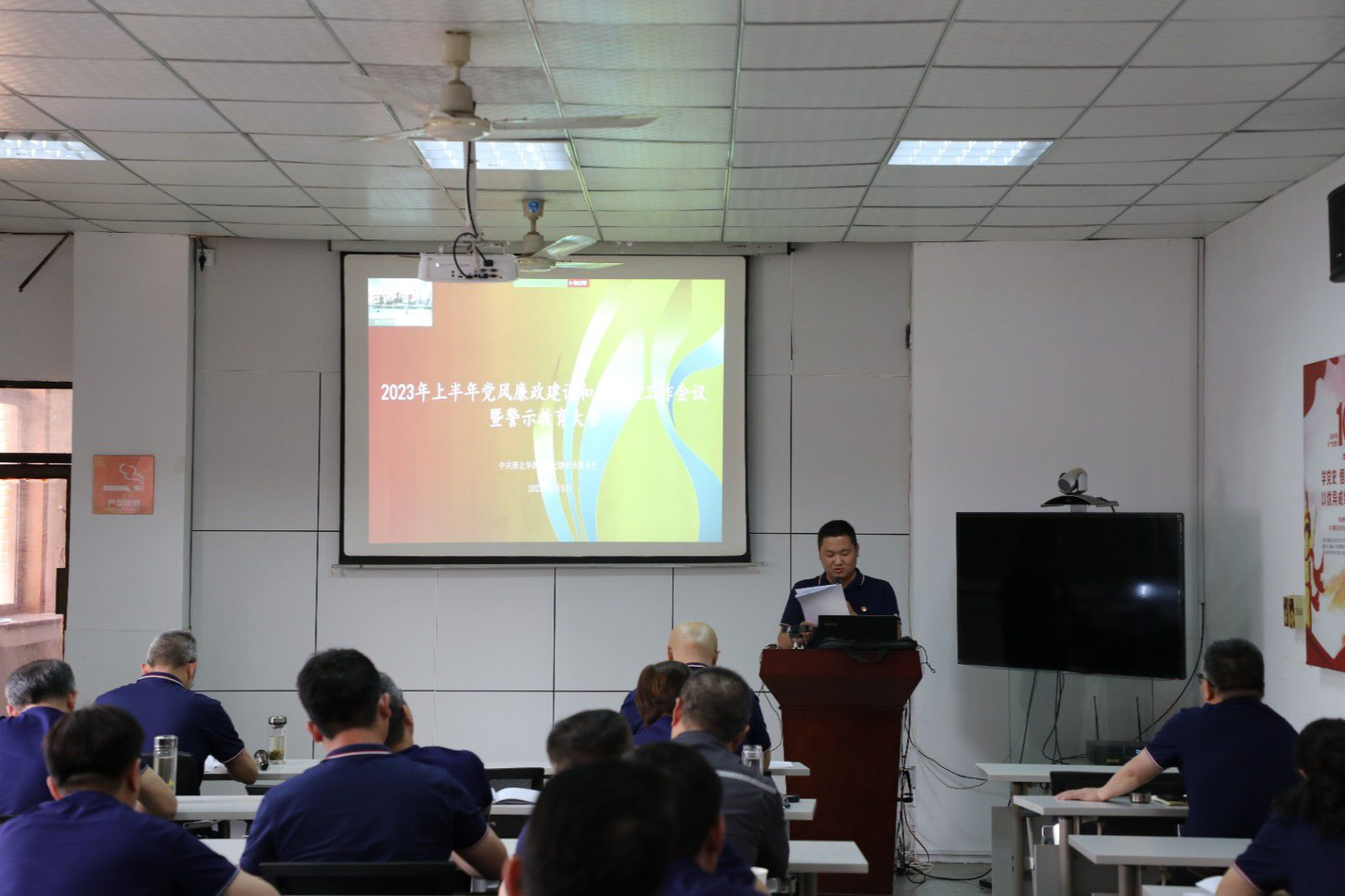 會(huì)議首先集中觀看了《永遠(yuǎn)吹沖鋒號(hào)》和《抉擇》兩部警示教育片,通過(guò)觀看警示教育短片,告誡大家必須牢固樹(shù)立紅線意識(shí),不斷提升黨性修養(yǎng)和拒腐防變的能力;會(huì)上淮北公司紀(jì)委委員李坤同志傳達(dá)了幾起集團(tuán)內(nèi)部違紀(jì)違法案例,用身邊事教育身邊人,告誡大家廉潔從業(yè),干凈做人。紀(jì)委辦公室主任鄭敏同志將上半年黨風(fēng)廉政建設(shè)情況向大家進(jìn)行通報(bào);隨后淮北公司黨委委員、紀(jì)檢工作負(fù)責(zé)人李傳華同志對(duì)2022年紀(jì)檢工作進(jìn)行了總結(jié),并對(duì)2023年紀(jì)檢工作重點(diǎn)提出建議。